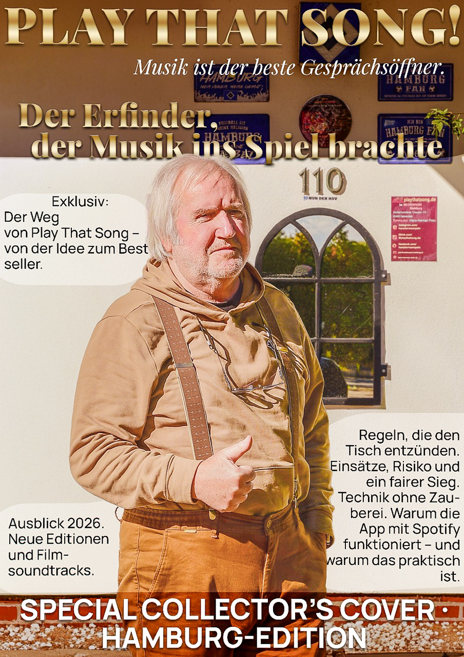 „Wer bin Ich“? Mein Name ist Hans-Hermann Pein, und ich betrachte mich als «Musik Meister Mind“ für mein Musikpartyspiel „PLAY THAT SONG!“. Man könnte auch sagen, ich bin der Inhaber und Ideengeber! Seit vielen Jahren arbeite ich an meiner Idee für eine Musikparty mit Quizfragen, exklusiv unter Freunden. Dabei spiele ich Songs ab und stelle Fragen wie: Wer ist der Interpret? Wie lautet der Songtitel? sowie weitere Fragen. Die ersten Schritte dieser Musikparty haben allen ungemein viel Spaß gemacht!Durch den enormen Erfolg dieser Musikpartys bei meinen Freunden kam der Vorschlag auf, meine Musikparty in ein Musik-Quiz umzuwandeln. Mit meinem Wissen über Musik sollte mir doch das leichtfallen ? ! ? Meine Leidenschaft für Musik und Spiele, hat mich dazu inspiriert „PLAY THAT SONG“ zu endwickeln.